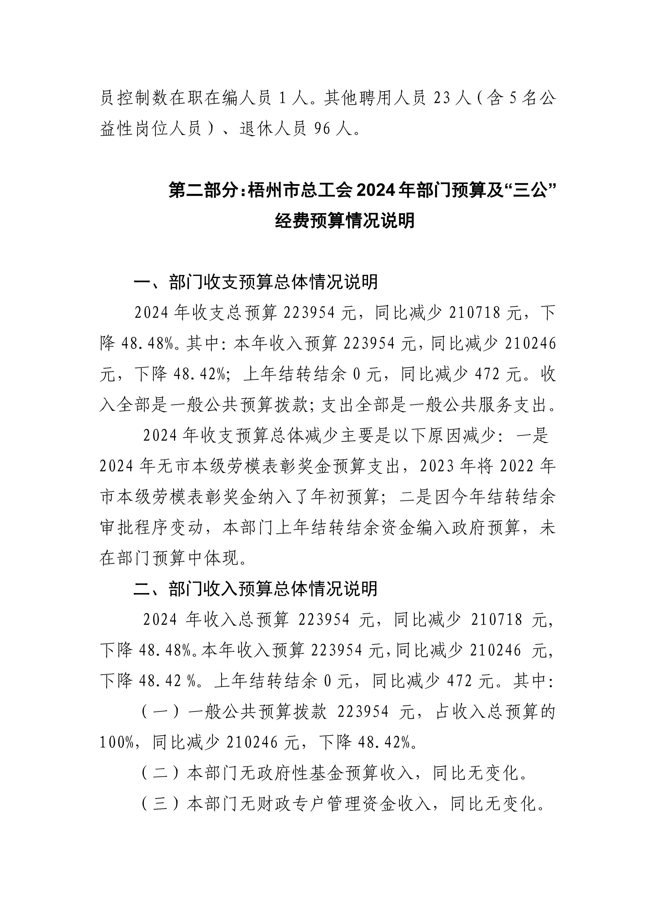 [部門預算]梧州市總工會2024年部門預算及“三公”經費預算情況說明.pdf