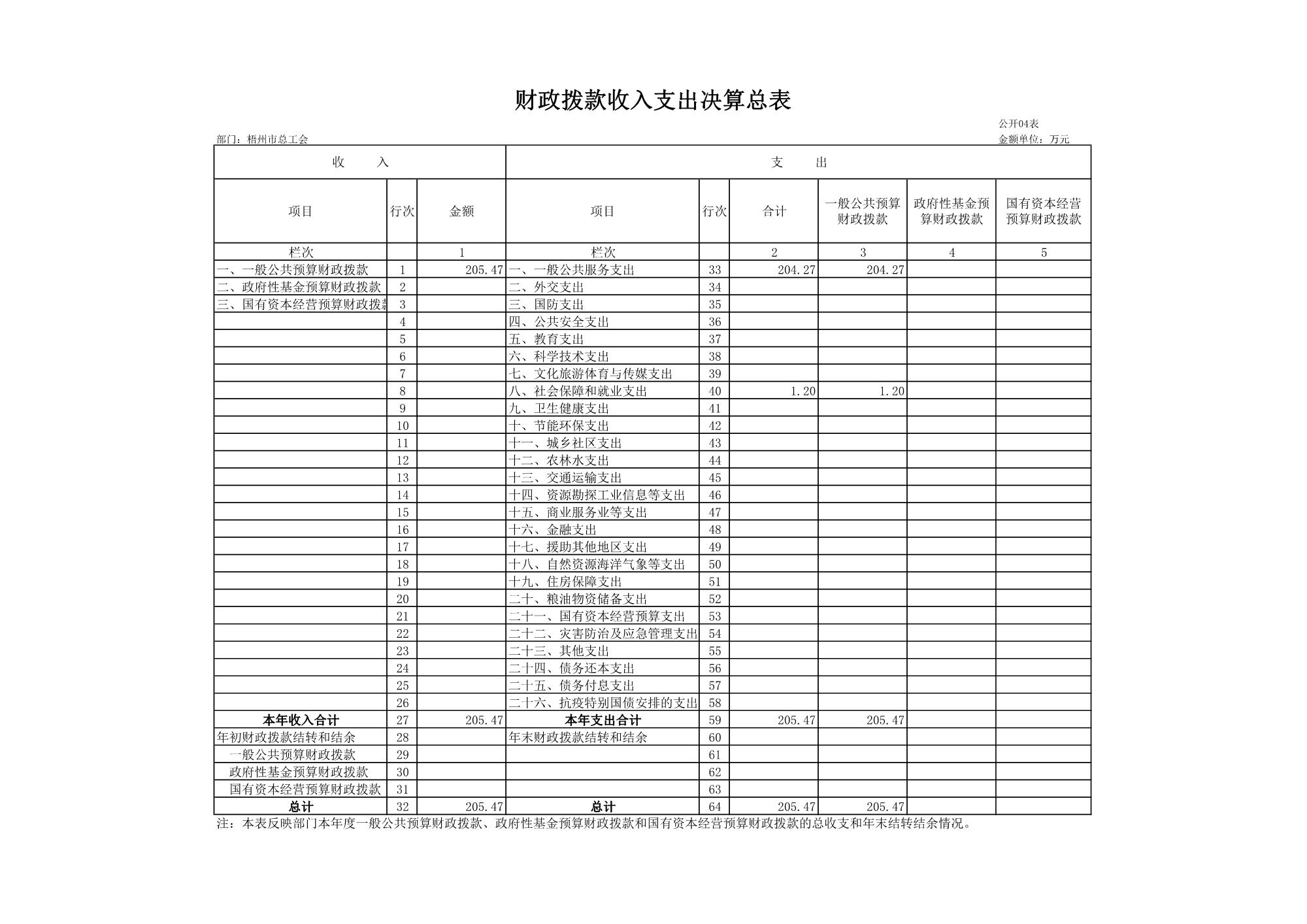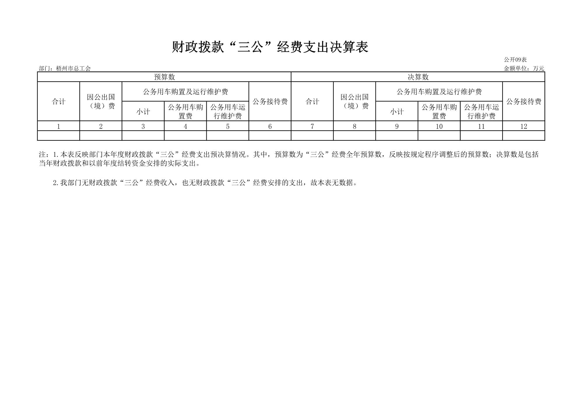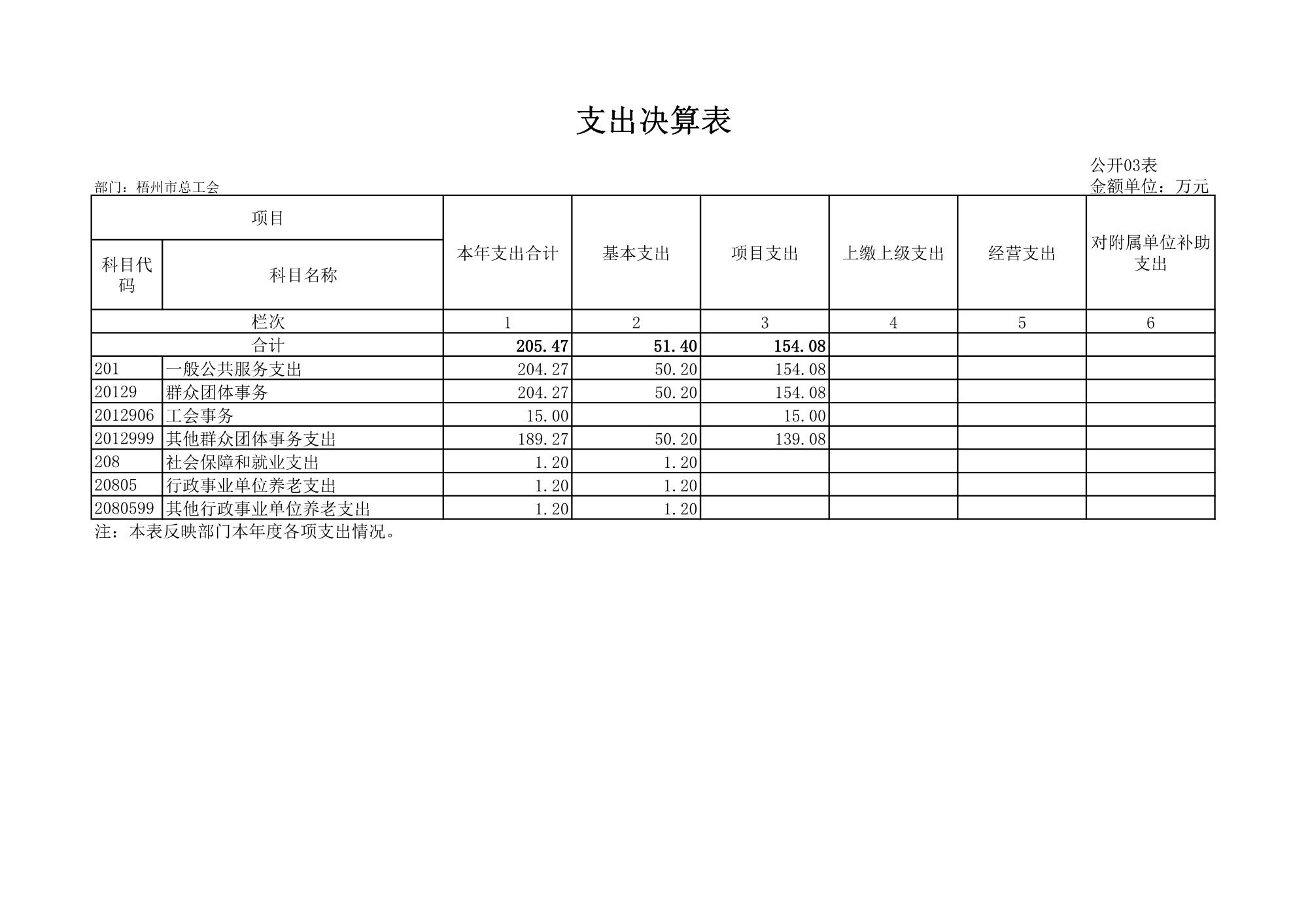 梧州市總工會(huì)2023年度部門決算公開表