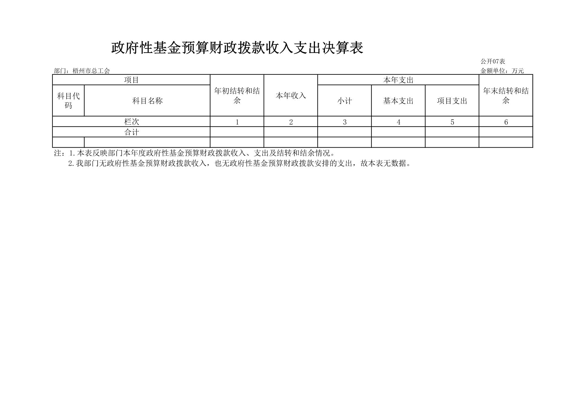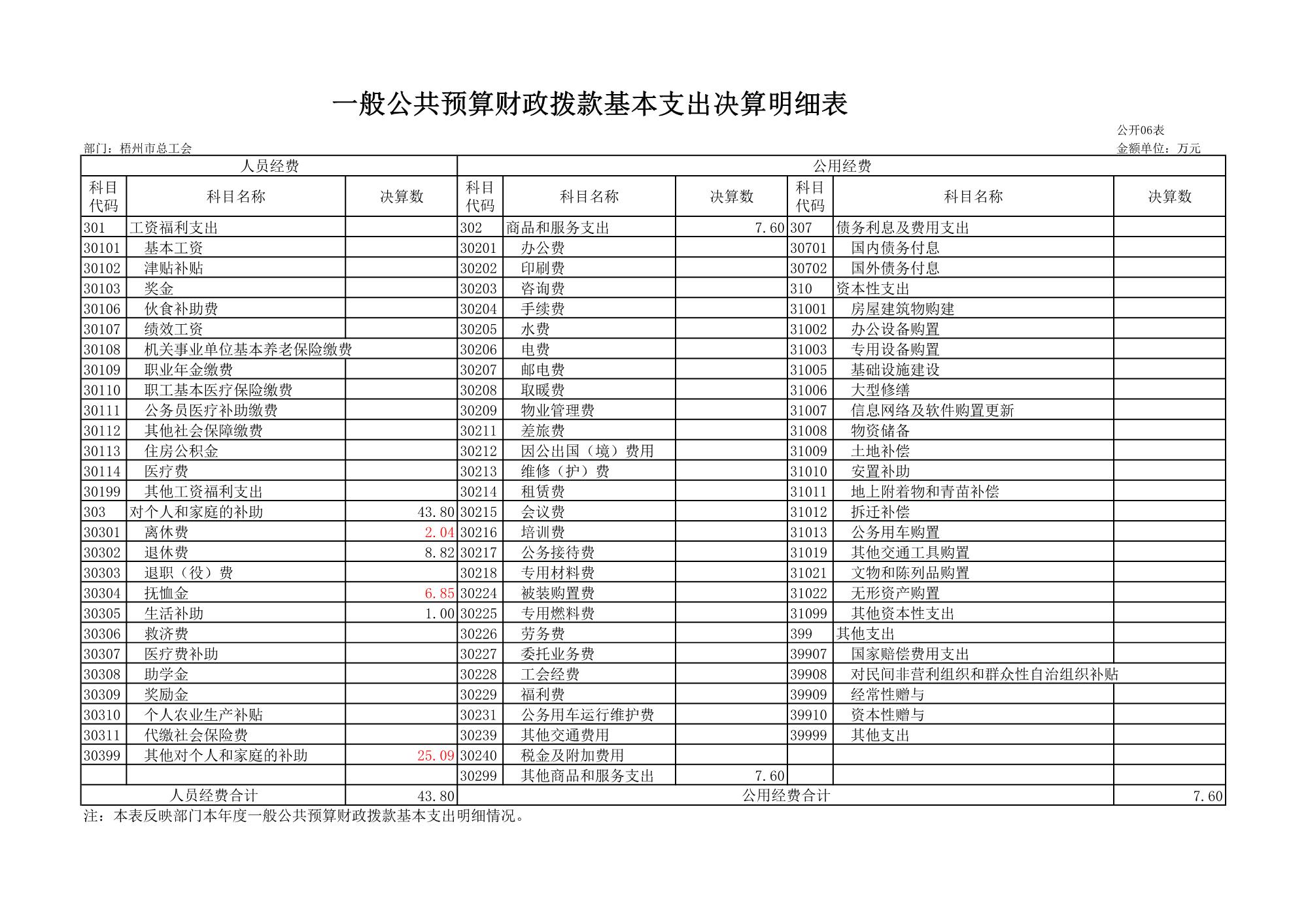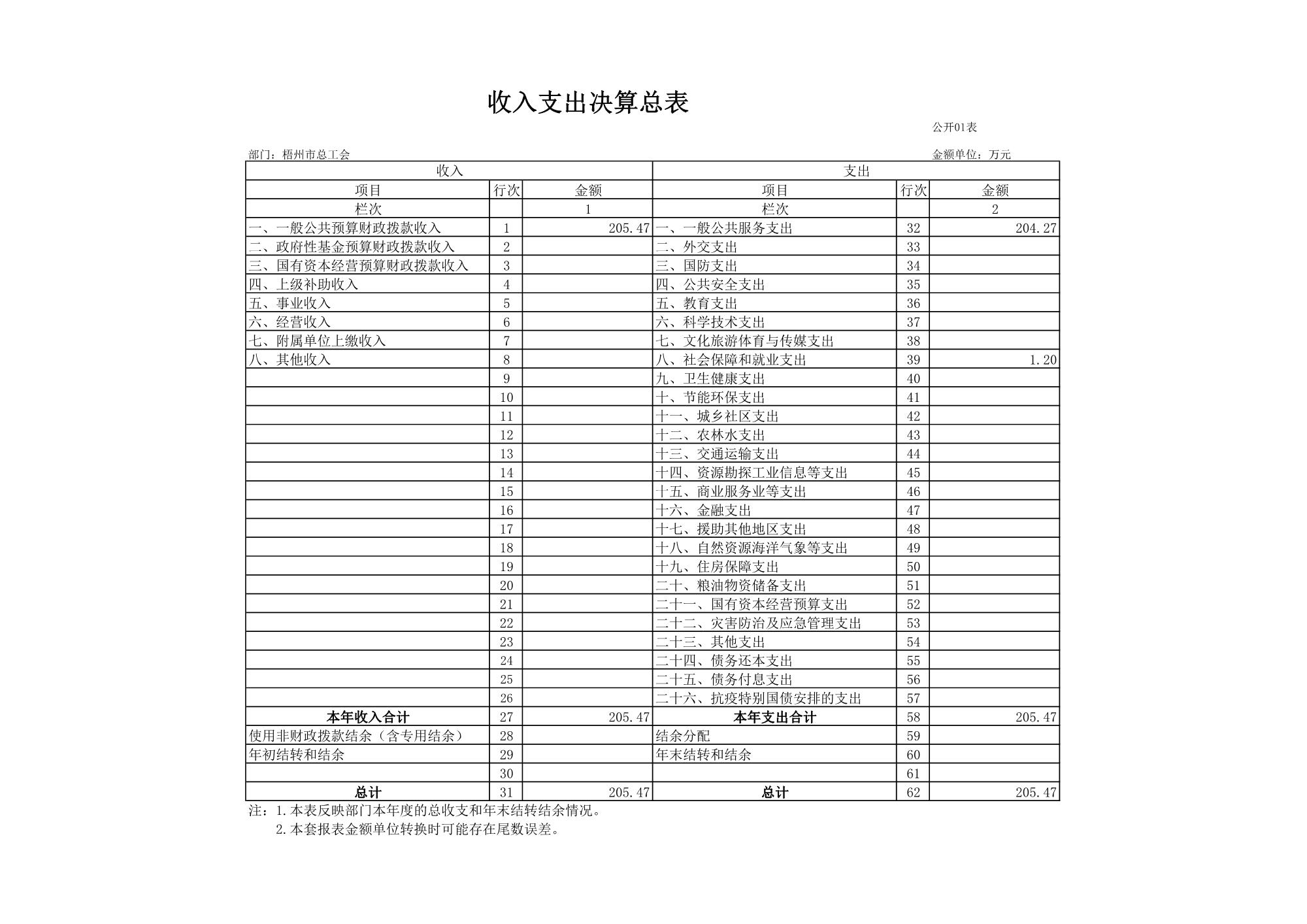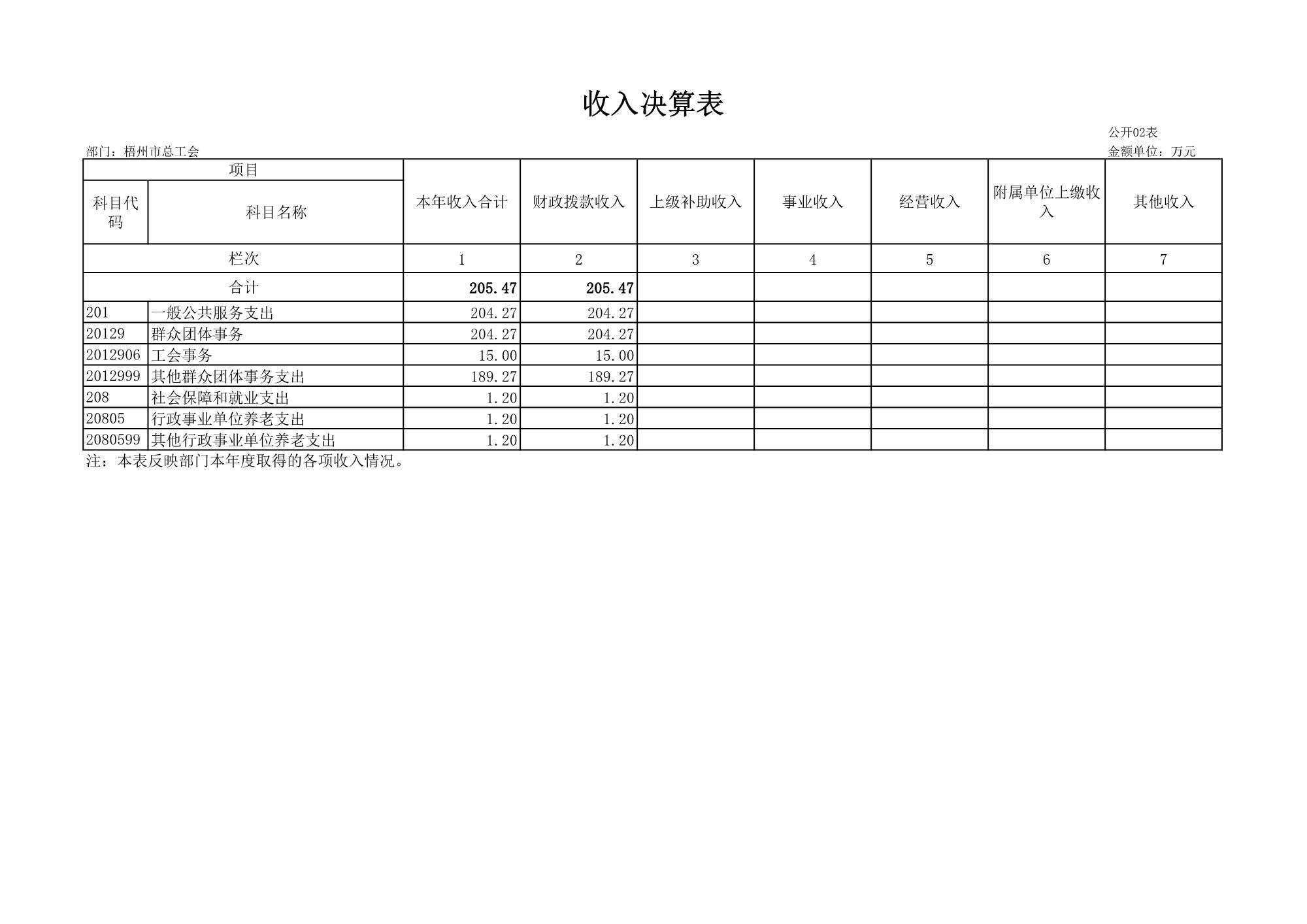 梧州市總工會(huì)2023年度部門決算公開表